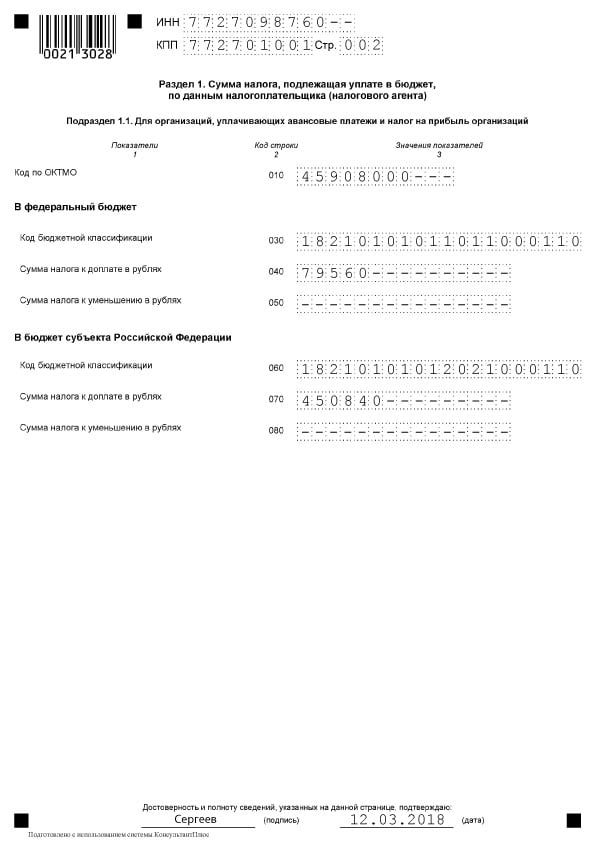 | Ежемесячные авансы из фактической прибыли | Подраздел 1.2 Раздела 1 (только за I квартал и год) |