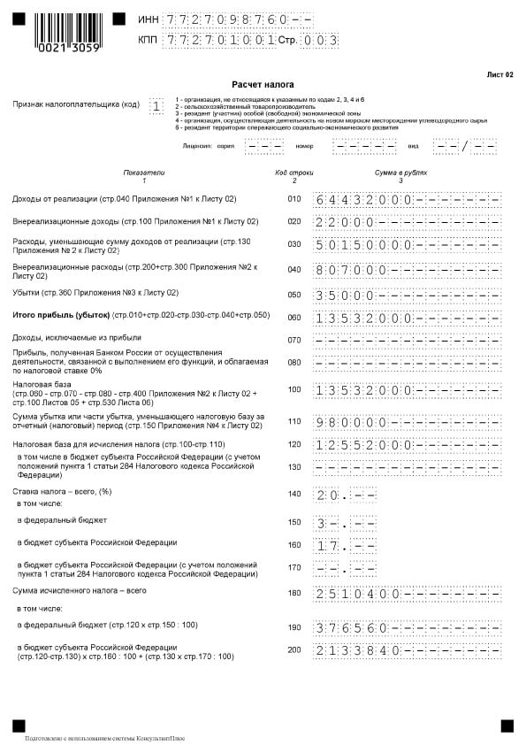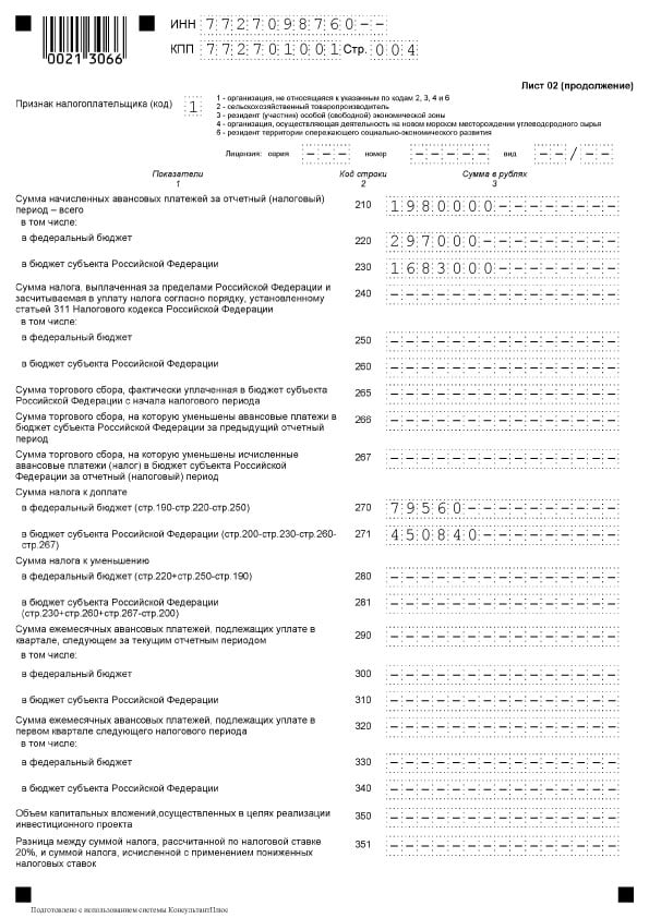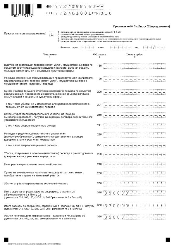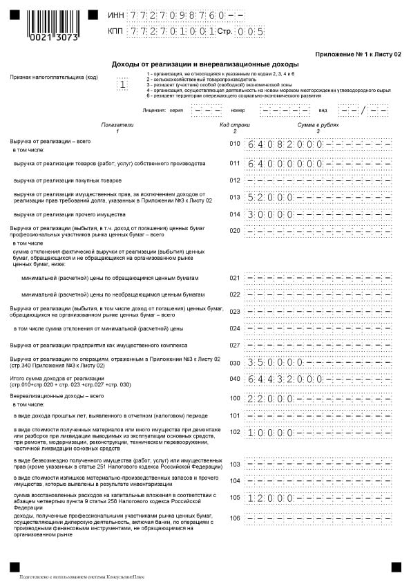 Значения в строках 010, 020 и 040 входят в сумму строки 130 того же листа. Это значение, в свою очередь, переносится в строку 030 листа 02 налоговой декларации.