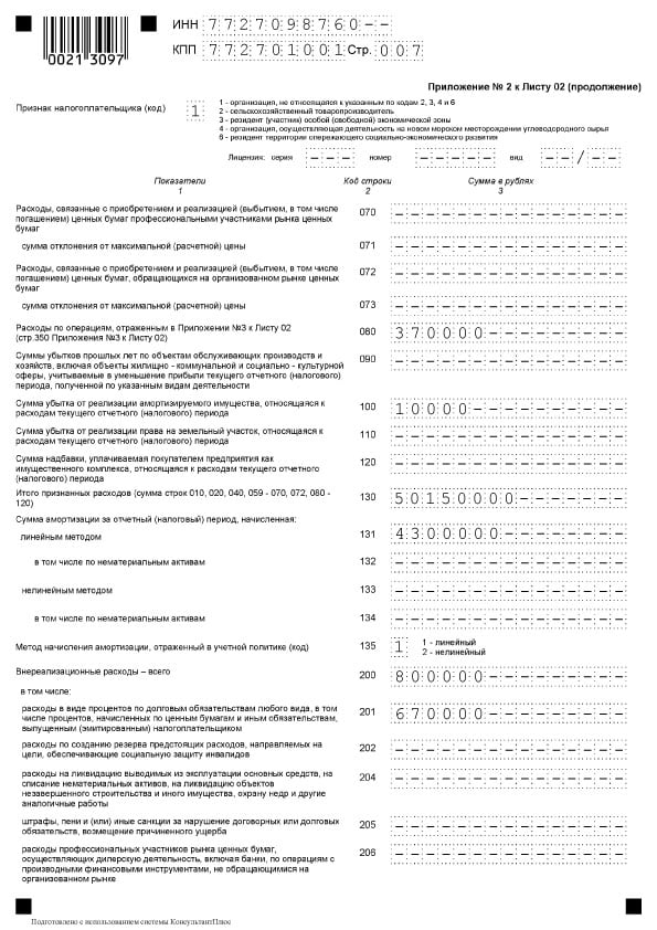 Сумма прямых расходов для обложения налогом на прибыль отражается в декларации по строке 010 приложения № 2 к листу 02. Здесь фиксируется сумма нарастающим итогом с начала года.