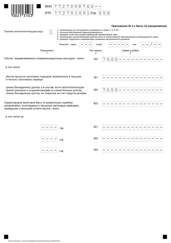 В строке 300 приложения 2 листа 02 отражаются убытки, которые считаются внереализационными расходами, например, обнаруженные в отчетном году убытки прошлых лет, потери, вызванные простоями на производстве и стихийными бедствиями.