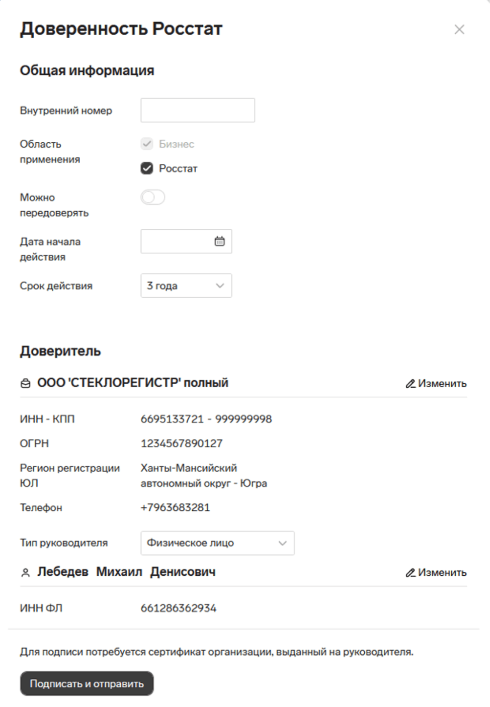 После оформления доверенность должна быть подписана сертификатом руководителя. В случае его отсутствия скоро появится возможность удаленного подписания.