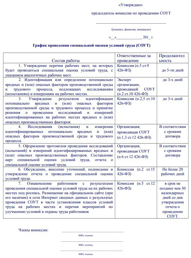 Затем комиссия должна составить график проведения спецоценки, а директор — утвердить его своим приказом.