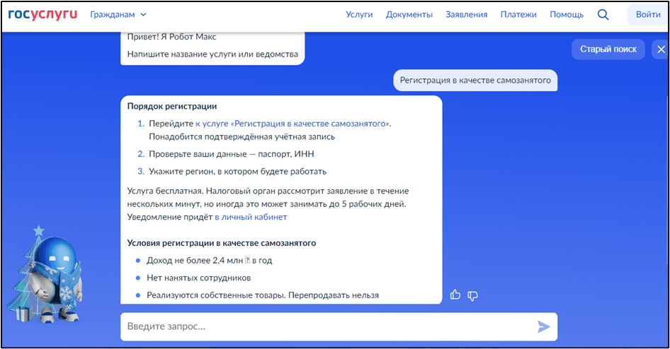- Статус — самозанятый.